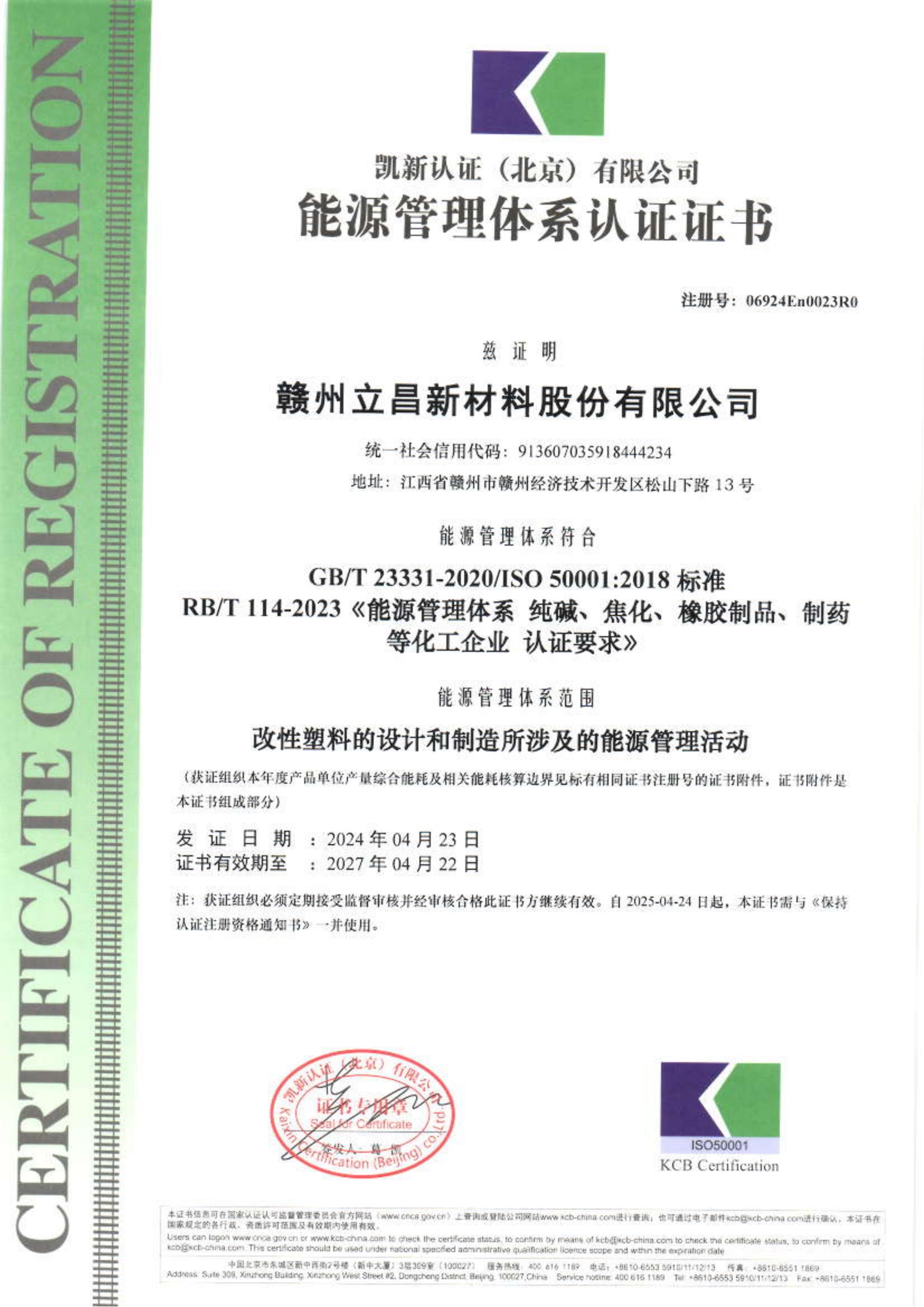 贛州立昌新材料股份有限公司 地址:江西省贛州市經(jīng)濟(jì)技術(shù)開發(fā)區(qū)松山下路13號
